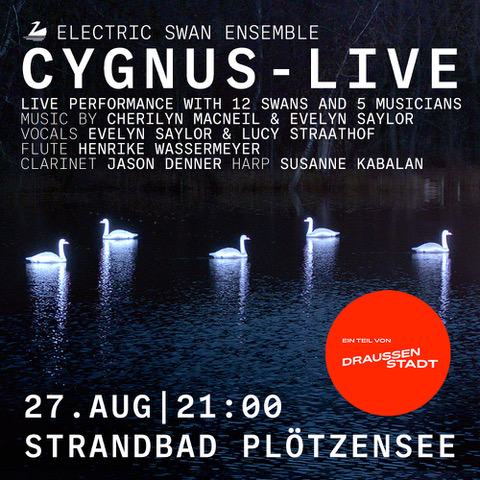 Das ELECTRIC SWAN ENSEMBLE lädt dich ein auf eine experimentelle Reise tief ins Uncanny Valley. Ausgestattet mit Musik und Mythos betreten wir furchtlos das magische Spielfeld zwischen Natur und Technik. 12 lebensechte Schwäne, von einem inneren Licht erhellt, tanzen und singen auf dem Wasser. Sie treffen bei diesem nächtlichen Rendezvous auf 5 Musiker, die sie vom Ufer aus begleiten.